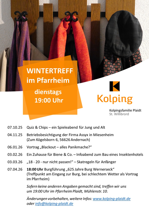 03.02.2026 Dienstag - 19.00 Uhr - Wintertreff im Pfarrheim Plaidt