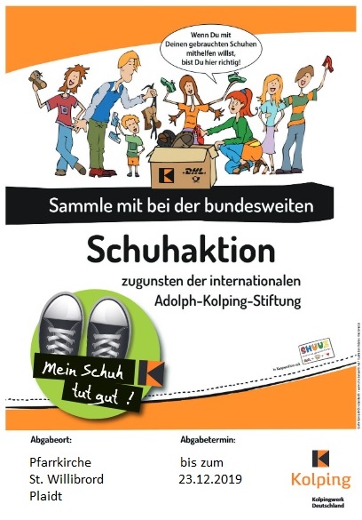KOLPING sammelt wieder gebrauchte, aber noch tragbare Schuhe. Die Erlöse unterstützen die Arbeit des Kolpingwerks Deutschland wie die Förderung von Berufsbildungszentren oder den Jugendaustausch und internationale Begegnungen. Weitere Informationen: www.mein-schuh-tut-gut.de